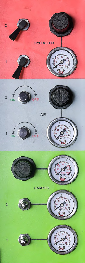 All the parameters, (set and actual), are displayed. The higher temperature cut off (adjustable) are provided for all the channels. Flame Ionisation Detector is designed to give high sensitivity, while Thermal Conductivity Detector is with minimum cell volume to get maximum sensitivity.